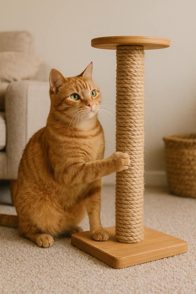 Scratching is a natural feline behavior. Cats scratch to mark territory, stretch their muscles, and maintain healthy claws. Providing a sturdy scratching post gives them an appropriate outlet for this instinct.